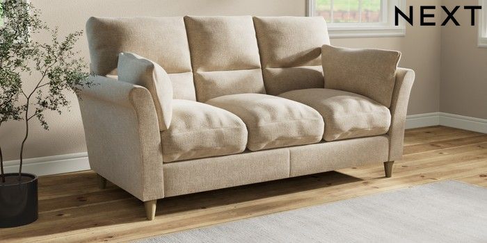 7.3.1 Buy Hartley Highback Relaxed Sit 3 Cushion 3 Seater Sofa Chunky Weave Cream Low Conical - Light from the Laura Ashley online shop Click here to use our website with more accessibility support, for example screen readers