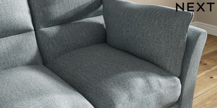 7.3.1 Buy Hartley Highback Relaxed Sit 3 Cushion 3 Seater Sofa Chunky Weave Mid Blue Low Conical - Dark from the Laura Ashley online shop Click here to use our website with more accessibility support, for example screen readers