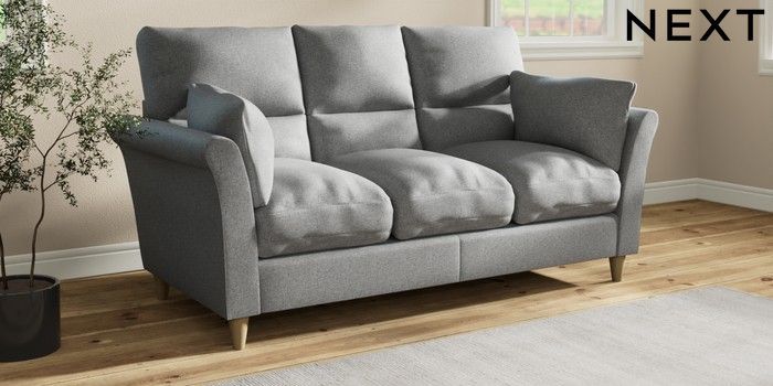 7.3.1 Buy Hartley Highback Relaxed Sit 3 Cushion 3 Seater Sofa Chunky Weave Mid Grey Low Conical - Light from the Laura Ashley online shop
