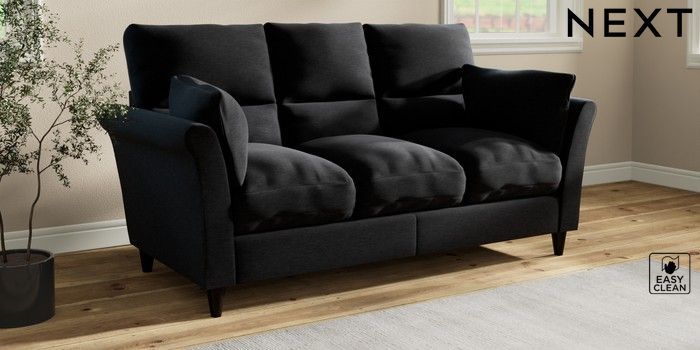 7.3.1 Buy Hartley Highback Relaxed Sit 3 Cushion 3 Seater Sofa Fine Chenille Easy Clean Black Low Conical - Dark from the Laura Ashley online shop Click here to use our website with more accessibility support, for example screen readers