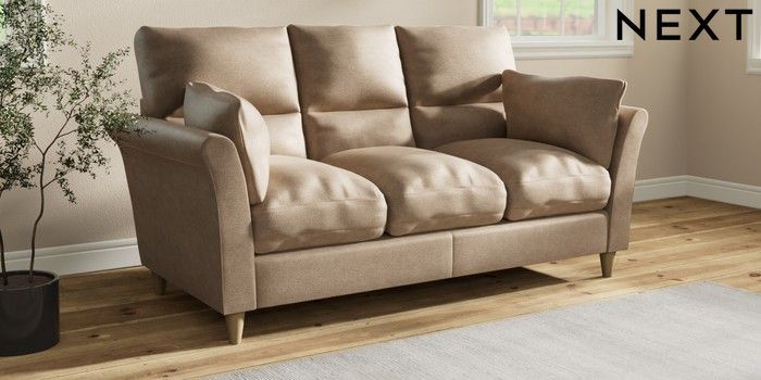 7.3.1 Buy Hartley Highback Relaxed Sit 3 Cushion 3 Seater Sofa Luxe Chenille Mid Camel Beige Low Conical - Light from the Laura Ashley online shop