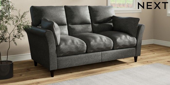 7.3.1 Buy Hartley Highback Relaxed Sit 3 Cushion 3 Seater Sofa Plush Chenille Dark Grey Low Conical - Dark from the Laura Ashley online shop