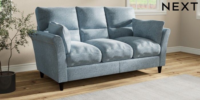 7.3.1 Buy Hartley Highback Relaxed Sit 3 Cushion 3 Seater Sofa Plush Chenille Light Blue Low Conical - Dark from the Laura Ashley online shop