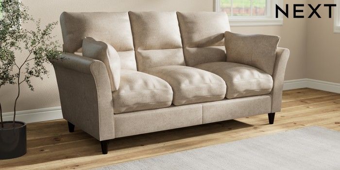7.3.1 Buy Hartley Highback Relaxed Sit 3 Cushion 3 Seater Sofa Plush Chenille Light Natural Low Conical - Dark from the Laura Ashley online shop