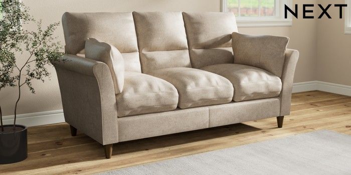 7.3.1 Buy Hartley Highback Relaxed Sit 3 Cushion 3 Seater Sofa Plush Chenille Light Natural Low Conical - Mid from the Laura Ashley online shop