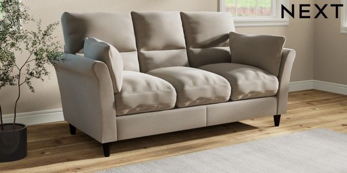 7.3.1 Buy Hartley Highback Relaxed Sit 3 Cushion 3 Seater Sofa Ripple Chenille Light Natural Low Conical - Dark from the Laura Ashley online shop Click here to use our website with more accessibility support, for example screen readers