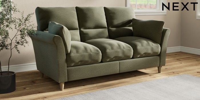 7.3.1 Buy Hartley Highback Relaxed Sit 3 Cushion 3 Seater Sofa Ripple Chenille Mid Moss Green Low Conical - Light from the Laura Ashley online shop