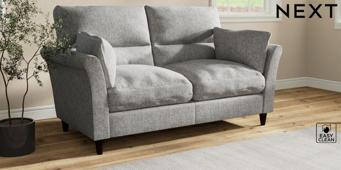 7.3.1 Buy Hartley Highback Relaxed Sit 3 Seater Small Sofa Chunky Boucle Easy Clean Light Grey Low Conical - Dark from the Laura Ashley online shop