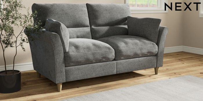 7.3.1 Buy Hartley Highback Relaxed Sit 3 Seater Small Sofa Chunky Chenille Dark Grey Low Conical - Light from the Laura Ashley online shop