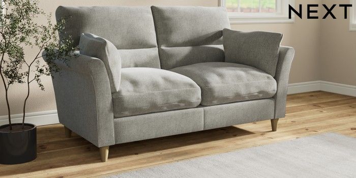 7.3.1 Buy Hartley Highback Relaxed Sit 3 Seater Small Sofa Chunky Chenille Light Grey Low Conical - Light from the Laura Ashley online shop
