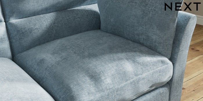 7.3.1 Buy Hartley Highback Relaxed Sit 3 Seater Small Sofa Plush Chenille Light Blue Low Conical - Mid from the Laura Ashley online shop