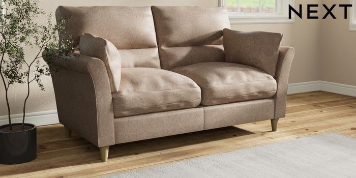 7.3.1 Buy Hartley Highback Relaxed Sit 3 Seater Small Sofa Plush Chenille Mid Natural Low Conical - Light from the Laura Ashley online shop