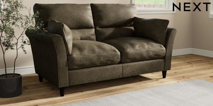 7.3.1 Buy Hartley Highback Relaxed Sit 3 Seater Small Sofa Plush Chenille Moss Green Low Conical - Dark from the Laura Ashley online shop