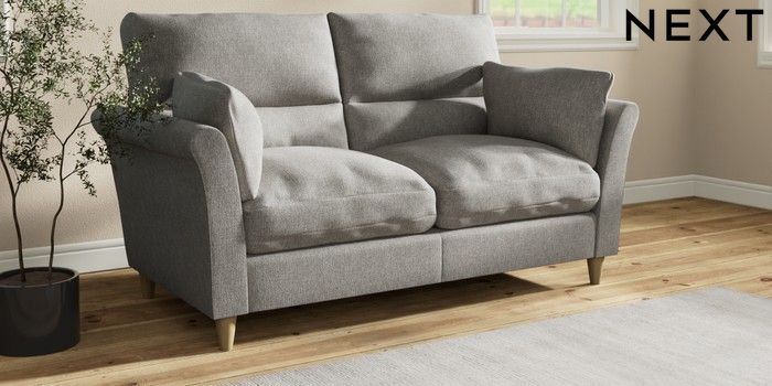 7.3.1 Buy Hartley Highback Relaxed Sit 3 Seater Small Sofa Tweedy Chenille Mid Grey Low Conical - Light from the Laura Ashley online shop