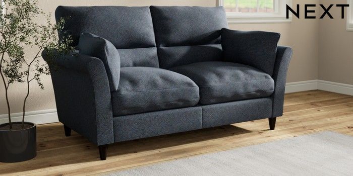 7.3.1 Buy Hartley Highback Relaxed Sit 3 Seater Small Sofa Tweedy Chenille Navy Blue Low Conical - Dark from the Laura Ashley online shop Click here to use our website with more accessibility support, for example screen readers