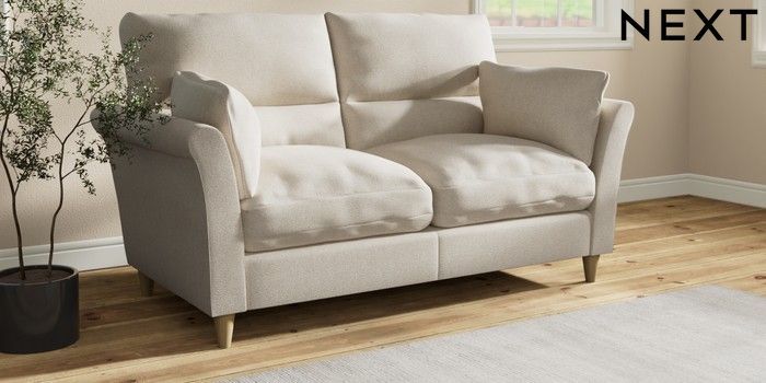 7.3.1 Buy Hartley Highback Relaxed Sit 3 Seater Small Sofa Tweedy Chenille Oyster Low Conical - Light from the Laura Ashley online shop