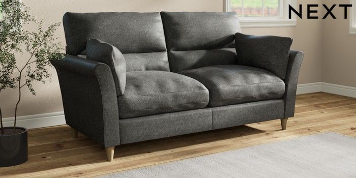 7.3.1 Buy Hartley Highback Relaxed Sit 3 Seater Sofa Plush Chenille Dark Grey Low Conical - Light from the Laura Ashley online shop