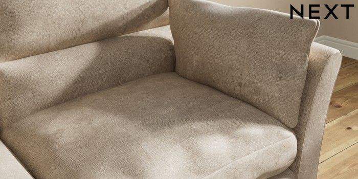 7.3.1 Buy Hartley Highback Relaxed Sit 3 Seater Sofa Plush Chenille Light Natural Low Conical - Dark from the Laura Ashley online shop