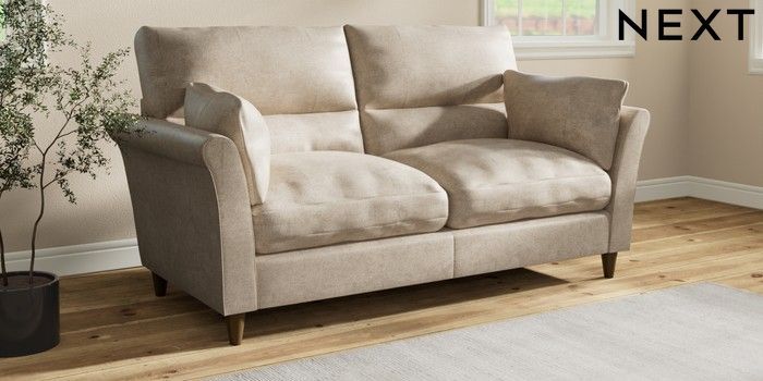 7.3.1 Buy Hartley Highback Relaxed Sit 3 Seater Sofa Plush Chenille Light Natural Low Conical - Mid from the Laura Ashley online shop