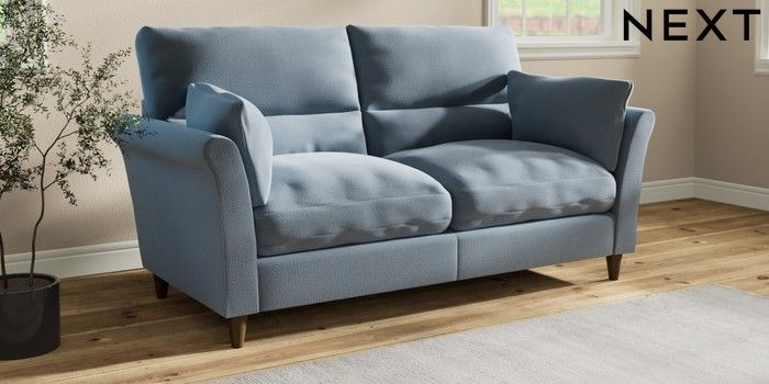 7.3.1 Buy Hartley Highback Relaxed Sit 3 Seater Sofa Relaxed Linen Look Mid Blue Low Conical - Mid from the Laura Ashley online shop