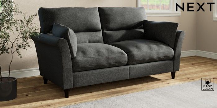 7.3.1 Buy Hartley Highback Relaxed Sit 3 Seater Sofa Tweedy Blend Easy Clean Charcoal Grey Low Conical - Dark from the Laura Ashley online shop