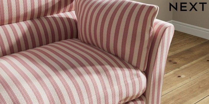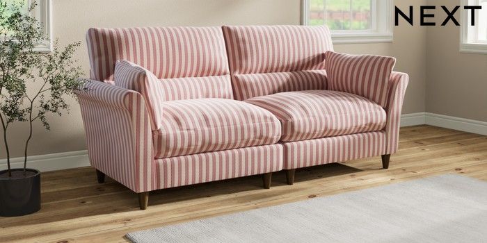 7.3.1 Buy Hartley Highback Relaxed Sit 4 Seater Sofa Bold Chenille Stripe Dark Pink Low Conical - Mid from the Laura Ashley online shop
