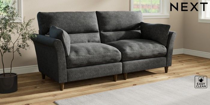 7.3.1 Buy Hartley Highback Relaxed Sit 4 Seater Sofa Boucle Weave Easy Clean Charcoal Grey Low Conical - Mid from the Laura Ashley online shop