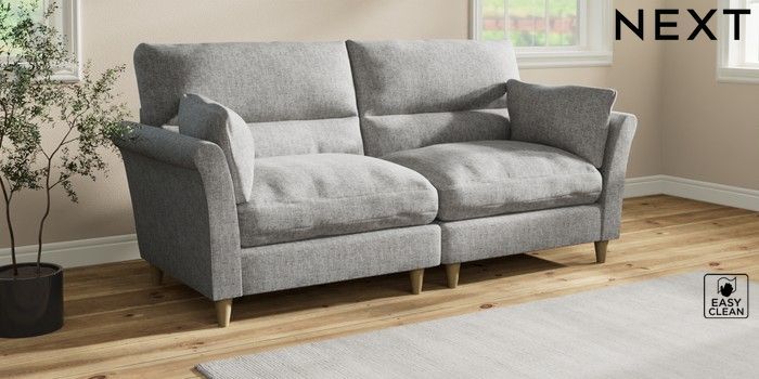 7.3.1 Buy Hartley Highback Relaxed Sit 4 Seater Sofa Chunky Boucle Easy Clean Light Grey Low Conical - Light from the Laura Ashley online shop