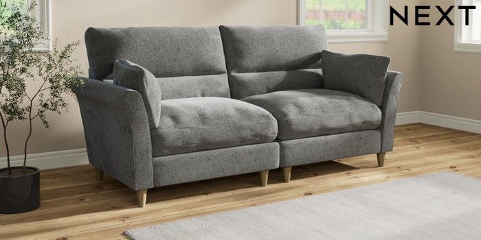 7.3.1 Buy Hartley Highback Relaxed Sit 4 Seater Sofa Chunky Chenille Dark Grey Low Conical - Light from the Laura Ashley online shop