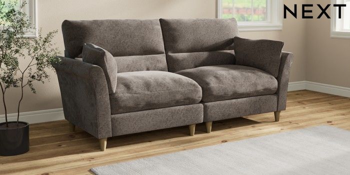 7.3.1 Buy Hartley Highback Relaxed Sit 4 Seater Sofa Chunky Chenille Mink Brown Low Conical - Light from the Laura Ashley online shop