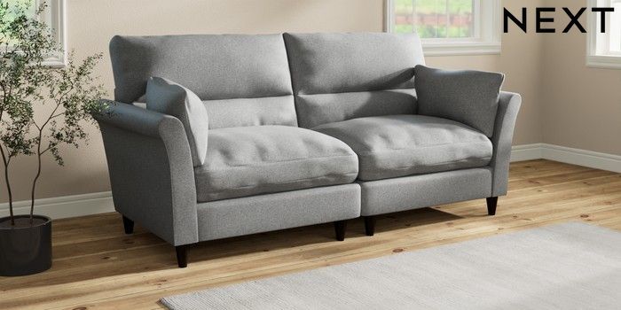 7.3.1 Buy Hartley Highback Relaxed Sit 4 Seater Sofa Chunky Weave Mid Grey Low Conical - Dark from the Laura Ashley online shop