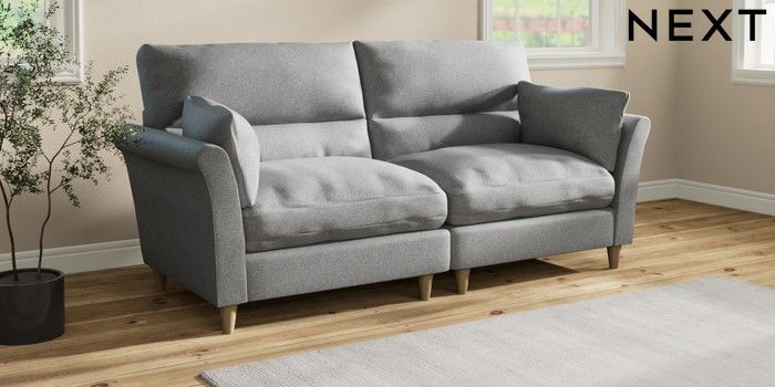 7.3.1 Buy Hartley Highback Relaxed Sit 4 Seater Sofa Chunky Weave Mid Grey Low Conical - Light from the Laura Ashley online shop
