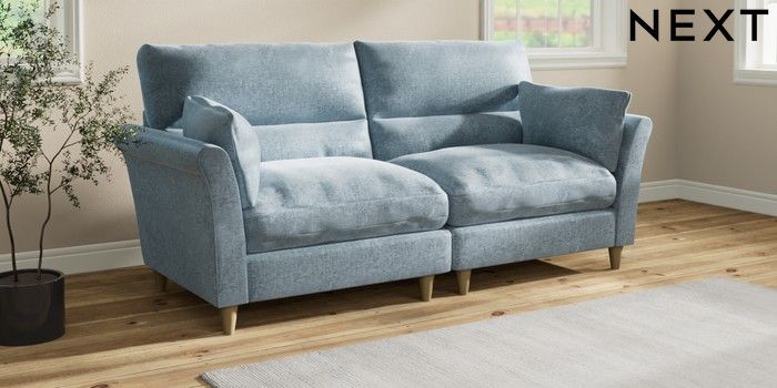 7.3.1 Buy Hartley Highback Relaxed Sit 4 Seater Sofa Plush Chenille Light Blue Low Conical - Light from the Laura Ashley online shop