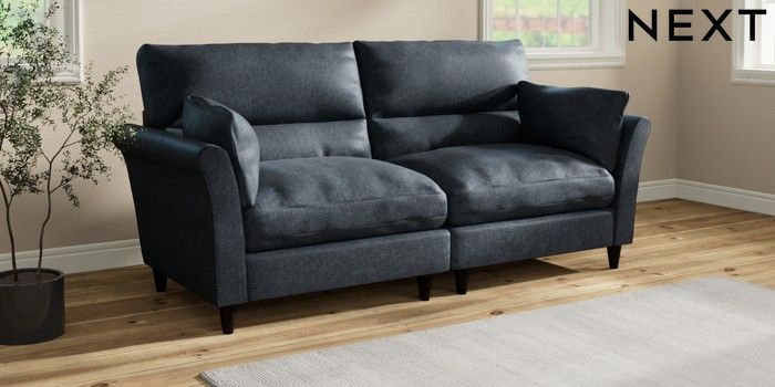 7.3.1 Buy Hartley Highback Relaxed Sit 4 Seater Sofa Plush Chenille Slate Blue Low Conical - Dark from the Laura Ashley online shop