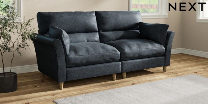 7.3.1 Buy Hartley Highback Relaxed Sit 4 Seater Sofa Plush Chenille Slate Blue Low Conical - Light from the Laura Ashley online shop