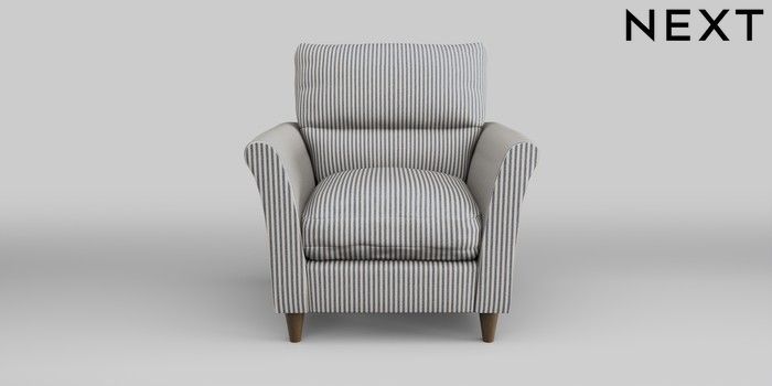 7.0.3 Buy Hartley Highback Relaxed Sit Armchair Chenille Stripe Slate Blue Low Conical - Mid from the Laura Ashley online shop Click here to use our website with more accessibility support, for example screen readers