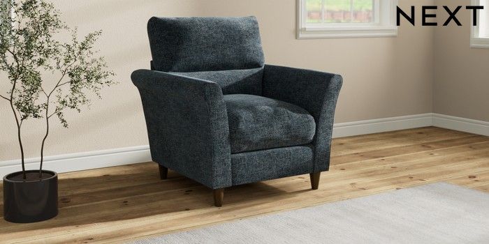 7.3.1 Buy Hartley Highback Relaxed Sit Armchair Chunky Chenille Dark Navy Blue Low Conical - Mid from the Laura Ashley online shop