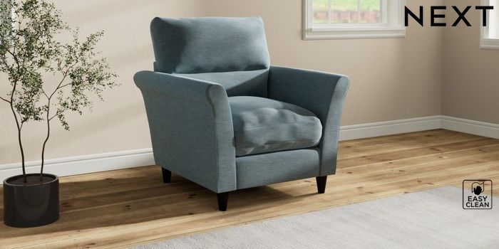 7.3.1 Buy Hartley Highback Relaxed Sit Armchair Fine Chenille Easy Clean Mid Blue Low Conical - Dark from the Laura Ashley online shop