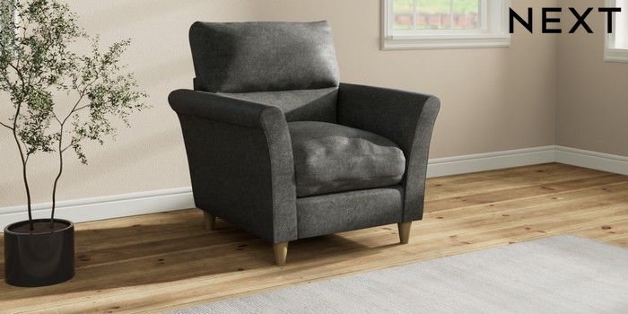 7.3.1 Buy Hartley Highback Relaxed Sit Armchair Plush Chenille Dark Grey Low Conical - Light from the Laura Ashley online shop