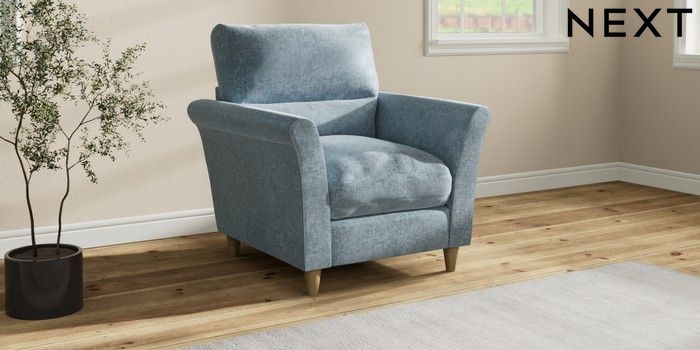 7.3.1 Buy Hartley Highback Relaxed Sit Armchair Plush Chenille Light Blue Low Conical - Light from the Laura Ashley online shop