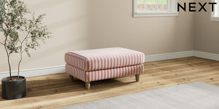 7.3.1 Buy Hartley Highback Relaxed Sit Footstool Bold Chenille Stripe Dark Pink Low Conical - Light from the Laura Ashley online shop