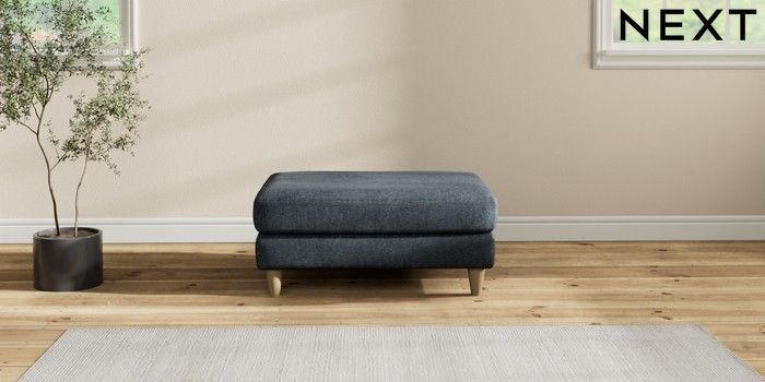 7.2.10 Buy Hartley Highback Relaxed Sit Footstool Plush Chenille Slate Blue Low Conical - Light from the Laura Ashley online shop Click here to use our website with more accessibility support, for example screen readers