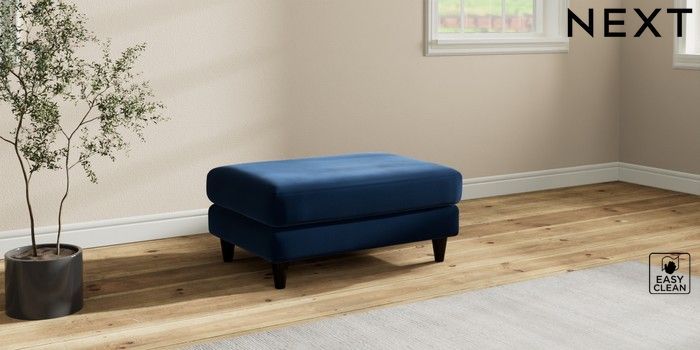 7.3.1 Buy Hartley Highback Relaxed Sit Footstool Plush Velvet Easy Clean Navy Blue Low Conical - Dark from the Laura Ashley online shop Click here to use our website with more accessibility support, for example screen readers