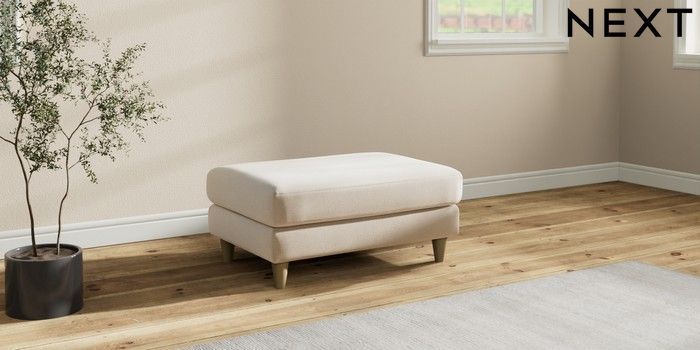 7.3.1 Buy Hartley Highback Relaxed Sit Footstool Studio Chenille Oyster Low Conical - Light from the Laura Ashley online shop