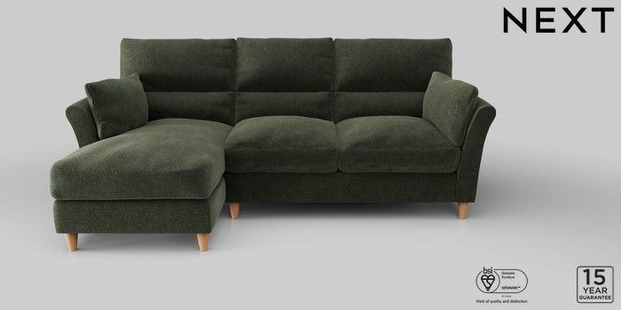 6.12.1 Buy Hartley Highback Relaxed Sit Medium Sofa Chaise - Left Hand Boucle Chenille Dark Moss Green Low Conical - Light from the Laura Ashley online shop Click here to use our website with more accessibility support, for example screen readers