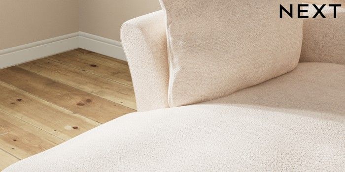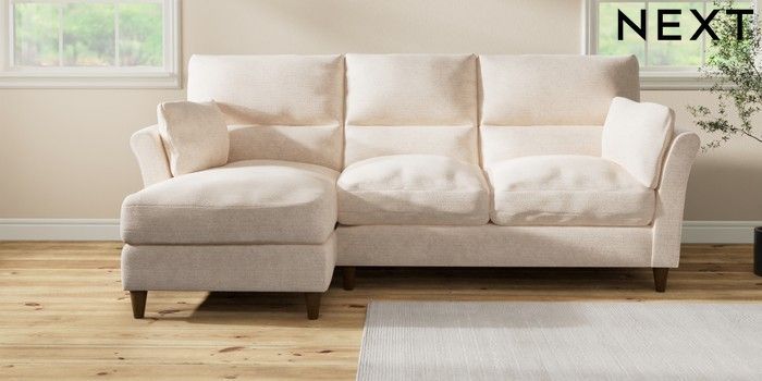 7.3.1 Buy Hartley Highback Relaxed Sit Medium Sofa Chaise - Left Hand Boucle Chenille Oyster Low Conical - Mid from the Laura Ashley online shop