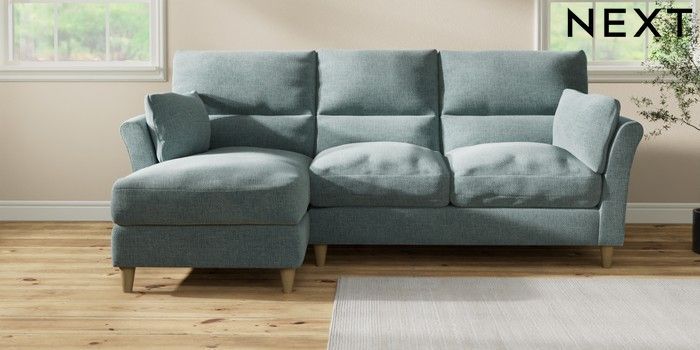 7.3.1 Buy Hartley Highback Relaxed Sit Medium Sofa Chaise - Left Hand Chunky Chenille Light Teal Green Low Conical - Light from the Laura Ashley online shop