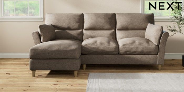 7.3.1 Buy Hartley Highback Relaxed Sit Medium Sofa Chaise - Left Hand Chunky Weave Dark Natural Low Conical - Light from the Laura Ashley online shop