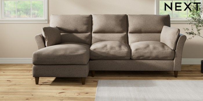 7.3.1 Buy Hartley Highback Relaxed Sit Medium Sofa Chaise - Left Hand Chunky Weave Dark Natural Low Conical - Mid from the Laura Ashley online shop