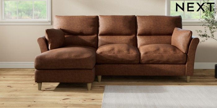 7.3.1 Buy Hartley Highback Relaxed Sit Medium Sofa Chaise - Left Hand Monza Faux Leather Easy Clean Chestnut Brown Low Conical - Light from the Laura Ashley online shop Click here to use our website with more accessibility support, for example screen readers